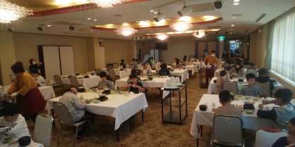 朝食は、和食でした。淡路島牛乳やビワゼリーもつきました。しっかり食べて、今日のエネルギーを蓄えました。