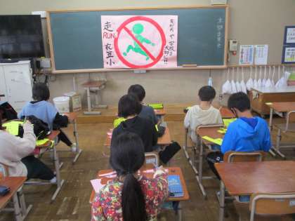本部委員会では,人権月間に合わせて,みんなが気持ちよく過ごせるようにと“走RUN衣笠小”というキャッチコピーで,廊下やピロティなどで走ることがないように呼びかけ,各クラスからできたことをコメントしてもらって掲示していく予定です。