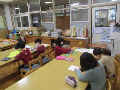 図書委員会では,昨日の委員会で,クリスマスに向けての本の展示や掲示物の作成などをしていました。