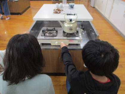 日本の伝統的な飲み物であるお茶をいれました。おいしいお茶をいれるには,沸かしたお湯を冷ますためにきゅうすに注ぐことや,湯飲み茶わんに注ぐときは,最後の一滴まで注ぐことを学びました。ほとんどの子どもたちが,「家ではきゅうすでお茶をいれたことがない」と言っていましたが,班で協力して取り組むことができました。ガスこんろを使ってお湯を沸かしたので,安全にも気を付けて使いました。