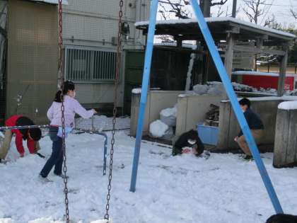 雪玉を転がして大きな雪だるまを作ったり,友達と雪合戦をしたりして思い思いに楽しみました。