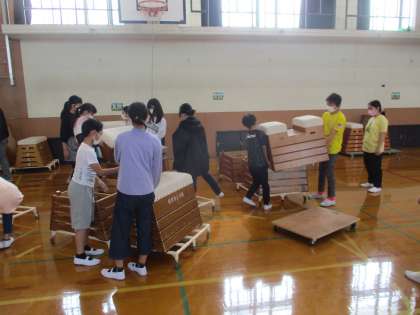 一人一人がてきぱきと動いて,跳び箱やマットを運んだり,バスケットのゴールを下げてくれたりしました。