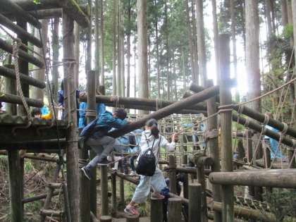 雨が降り出しそうなので,予定を変更して,先にアスレチックに行くことになりました。