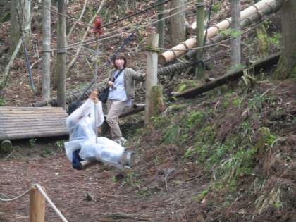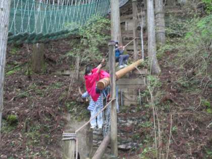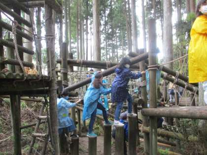 山の家のアスレチックは,思っている以上に急な斜面があったり,バランスをとるのが難しいところがあったりで,子どもたちも楽しんでいました。