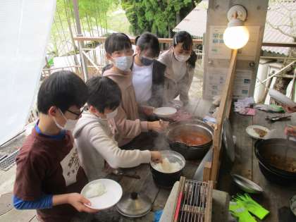 火おこしから始めた野外炊事。できあがったカレーライスもハヤシライスもとってもおいしかったっです。