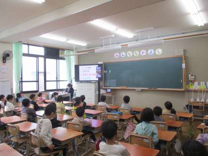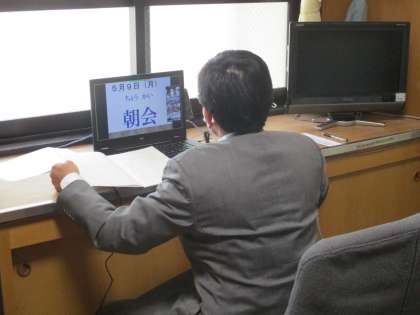 また,1年生にとっては,初めてのオンラインでの朝会でしたが,最後までとても静かにお話を聞くことができていました。