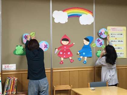 図書ボランティアの“ぽぽんた”さんが来てくださり,図書館の掲示物を新しく貼り替えて下さいました。
