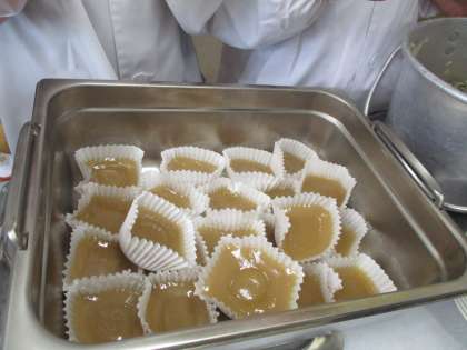 今日の給食ではスチームコンベクションオーブン(スチコン)を使ったメニューとして「ういろう」が出ました。