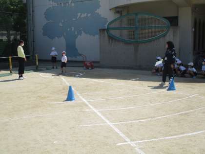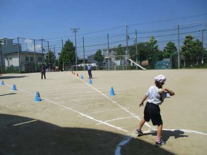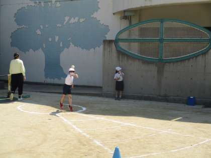2年生は初めてのソフトボール投げでしたが,投げ方をみんなで確かめ,一人一人が力いっぱい投げていました。2年生では10mを超える子はあまりいませんでしたが,中には20mを超える子もいて,自然と拍手が起こっていました。