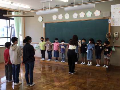 一人一人のお名前を呼んで返事をしてもらい,「好きな教科は何ですか?」など,いくつかの質問を1年生にしていました。