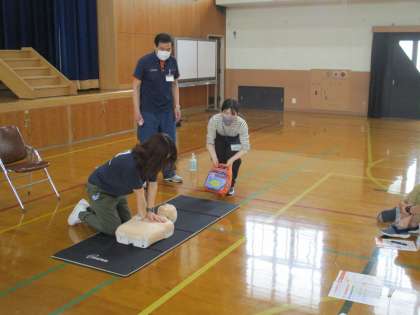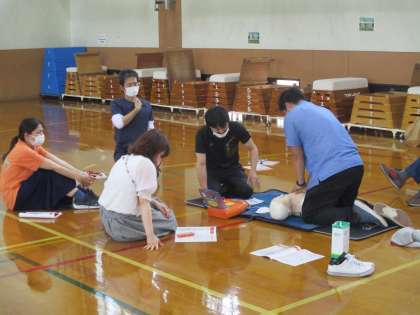 来月からの水泳学習を前に,教職員が救命救急講習を受けました。