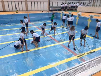 今日は6年生がプールの掃除をしてくれました。