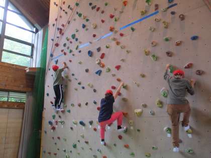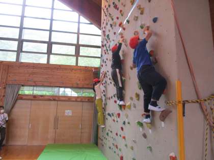 高さは3mほど。最初は恐る恐る登っていた子どもも,慣れてくると手足の置き場所を考えながら,スムーズに登っていっていました。