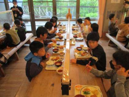 午後からも,館内ラリーで歩き回ったり,キャンドルファイヤの練習で踊ったりで,みんなおなかが減っていました。