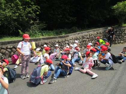 まずは登山口まで登りますが,そこまでもなかなかの坂道で,子どもたちはすでに少しへばっていました。