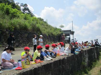 お勉強の後は,景色を楽しみながらのお弁当タイムです。
