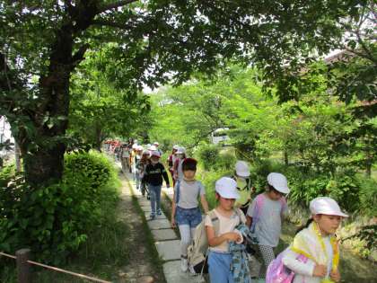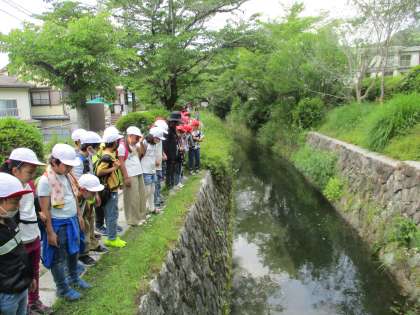 子どもたちもだいぶ歩き疲れてきましたが,川の中に鯉を見つけて盛り上がっていました。