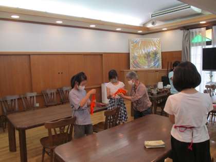茶道部では,割り稽古をしていました。手順を覚えるのが大変ですが,じっくりとていねいに教えてもらえるので,みんなうまくできていました。
