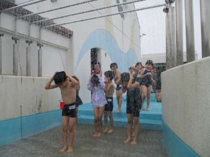 火曜日に入れるはずだったプールですが,雨のため,今日が初めてのプール学習です。