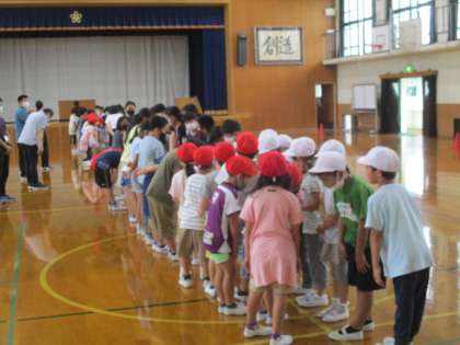 また、4年生が自分が取ったドッジビーを1年生に譲る場面も何度もあり、上級生としてのやさしい関わりができていました。