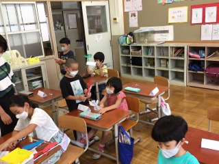 できた作品はさっそく友だちと見せ合って、楽しんでいました。