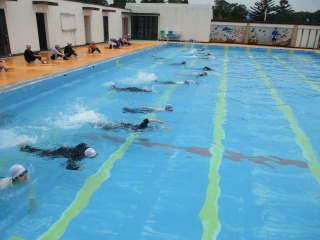 6年生が、もしもの水難事故に備え、着衣泳を行いました。