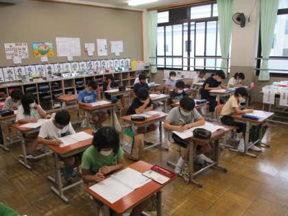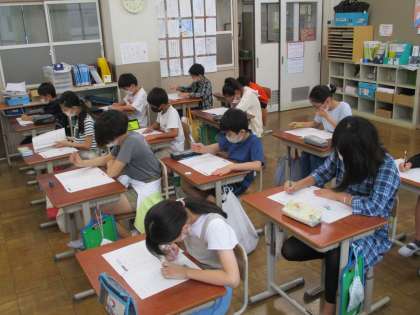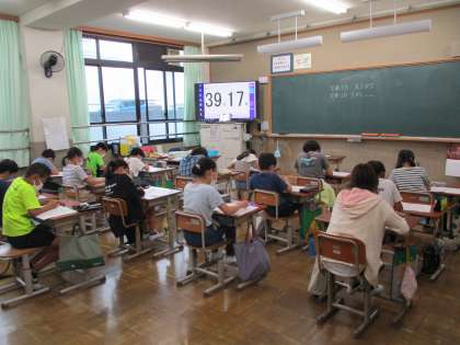 始まると、教室の中は鉛筆が動く音だけが聞こえ、とっても集中して考えていました。「国語」と「算数」の2教科を行いましたが、最後まであきらめずにがんばれたと思います。