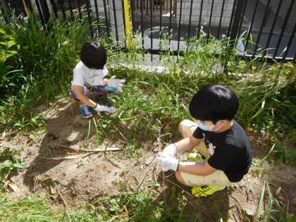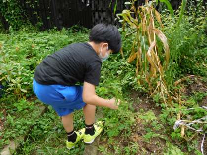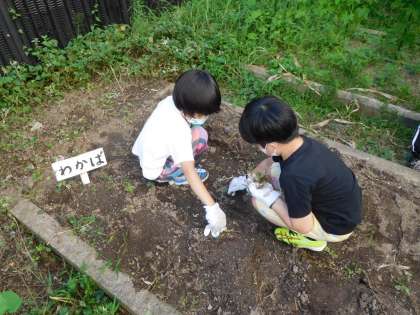 わかば学級では,毎日朝の会の後にイエローポップを収穫した後の茎や葉,たくさん生えていた雑草などを抜いて少しずつ畑の整備をしています。次に何かを育てるための準備です。みんなよく頑張って抜いてくれたので畑がみるみるきれいになりました。畑をきれいにすることと併せて,教室では今から育てられる野菜や花などを一人ずつ調べて,何を育てるか相談しています。育てたいものがたくさんあり,時機を逃さないように早く決めて育て始めたいと考えています。