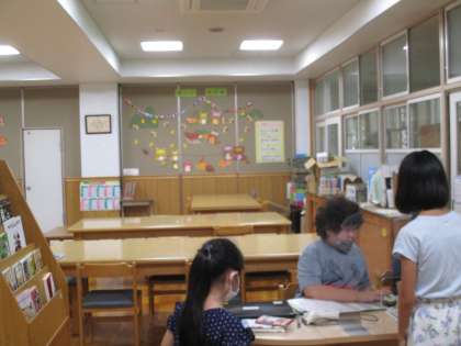 貸出しカウンターの奥にあるのですが、昼休みに図書館に来た子がすぐに気づいていました。