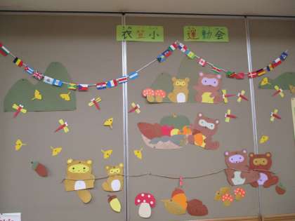 図書館ボランティアの“ぽぽんた”さんが来てくださり、図書館の掲示板の掲示を貼り替えてくださいました。運動会の様子をとってもかわいらしく掲示してくださいました。