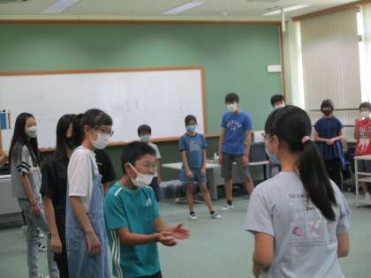 京都を中心に活動されている現役の舞台役者さんを講師としてお招きし、様々な表現手法を用いて、相互伝達を図ろうとする意欲を高めるためのワークに取り組みます。