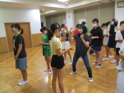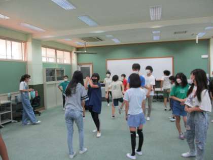 後半は、どちらのクラスも“ジェスチャー伝言ゲーム”をしていました。
