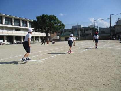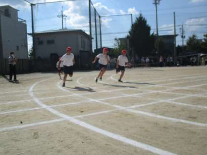 3年生の80m走。昨年までは直線の50m走でしたが、今年はカーブもある80m走でした。距離が長く、どうしても最後はスピードが落ちてきますが、最後まで全力で走っていました。