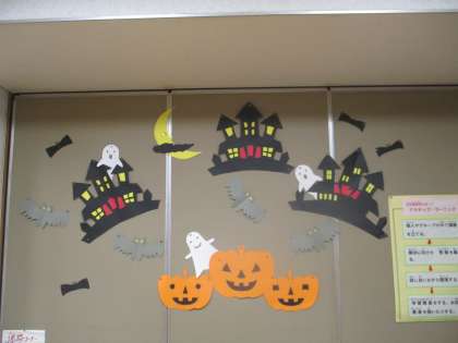 図書館の掲示板と2階の図書コーナーは、図書ボランティアのぽぽんたさんが来て下さり、ハロウィン仕様にしてくださいました。
