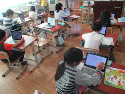 6種類のリズムカードを使って、お祭りの音楽をつくるのですが、今回はGIGA端末を使って、一人一人が考え、交流しました。