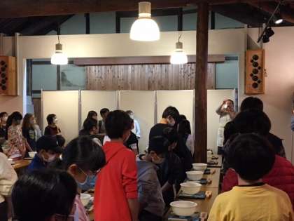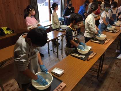 一人ずつ和三盆の型抜き体験をさせてもらいます。
