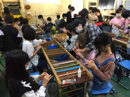 魅力を聞いた後は、いよいよ吹き戻しの手づくり体験です。