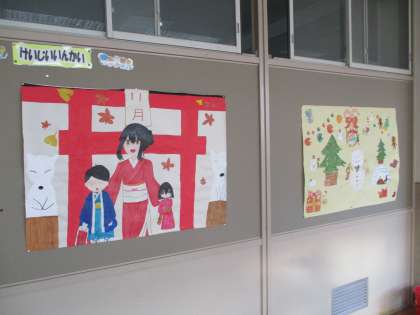 掲示委員会が作成している掲示は七五三と、少し早いですがクリスマスの様子を表してくれました。