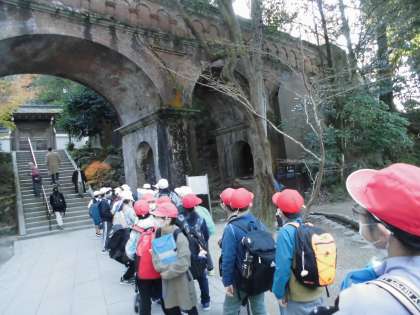 水路閣では、機械等を使わずに自然流下で水が流れていることを授業で学習していたのですが、水路閣の上を歩きながら水の流れを確かめると、流れが速いことに驚いていました。