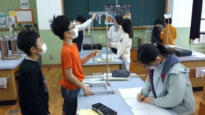 5年生の理科では,ふりこの動きについての学習をしています。ふりこの1往復する時間は何によって変わるのか・・・実験を進めてきました。ふりこの長さ,おもりの重さ,ふれはば。どれが変わると時間に影響するのか・・・。子どもたちは実験を通して答えを出せたようです!お家で聞いてみてくださいね。