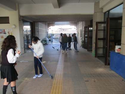 休み中にも、いろいろなところに埃はたまっていました。教室や廊下、ピロティなど、担当の場所をきれいにするために、掃き掃除や拭き掃除などをがんばってくれていました。