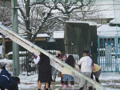 朝から子どもたちは雪遊びをするのを楽しみにしていました。
