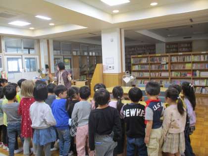 2階にも上がり、お兄さん・お姉さんが静かにお勉強している様子を見たり、図書室や体育館などの特別教室も見て回りました。