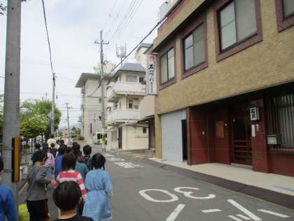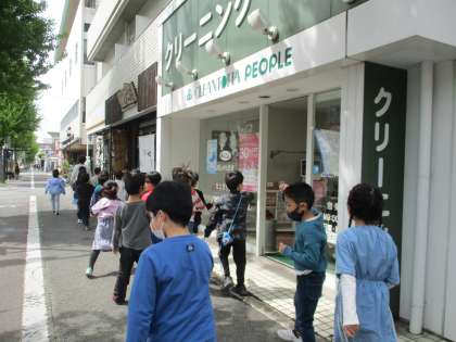 書写の学習で、町の中にあるたくさんの文字をさがす「文字たんけん」に出かけました。