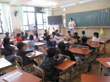 教室に戻ってからどんな文字があったか尋ねると、たくさんの子が手を挙げて答えていました。