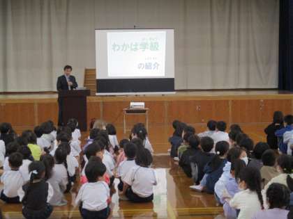 また、今年度は北下支部の育成学級の行事が本校で何度か行われます。育成学級の紹介も交えながら、支部の育成学級の子たちとの交流についてのお話もありました。