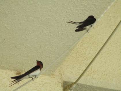 巣作りの時期なので、ピロティに新しい住みかとなる場所を探しているのかもしれません。