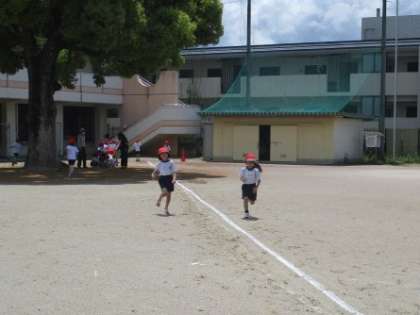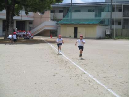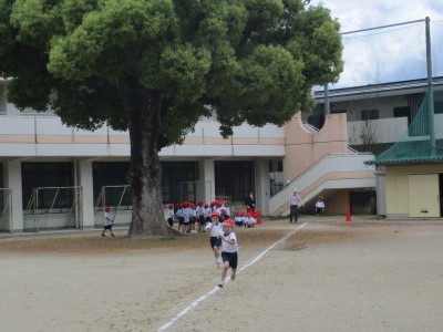 1年生にとっては、50mはなかなか長い道のり。練習では、ゴール手前でスピードを落としてしまう子もたくさんいました。