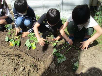 わかば学級の畑 サツマイモの再植え付け