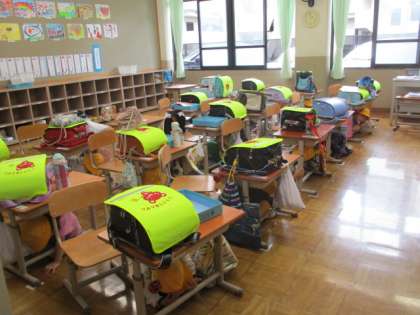今日は、震度6の烈震により校舎の損壊が激しく、さらに余震による危険から身を守るために、第3次避難(保護者への児童引き渡し)の必要性があるという想定で訓練を実施しました。